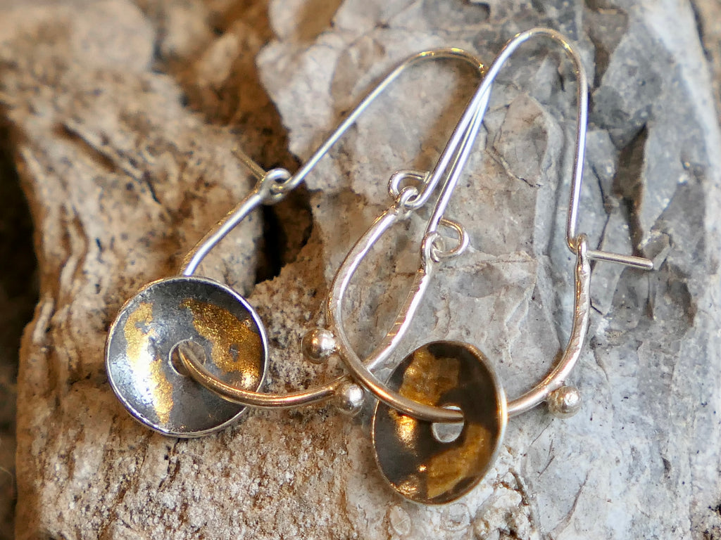 These earrings are composed of reticulated silver finished with a touch of 24ct gold leaf and silver ball detail.