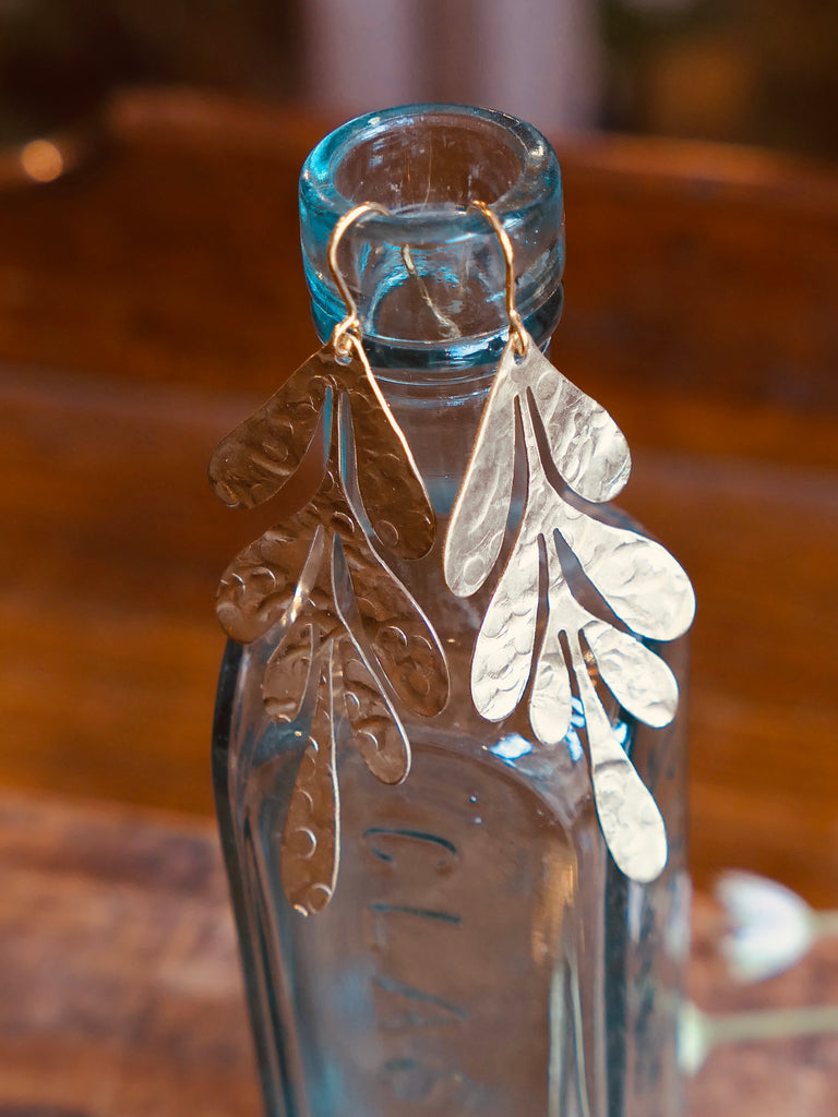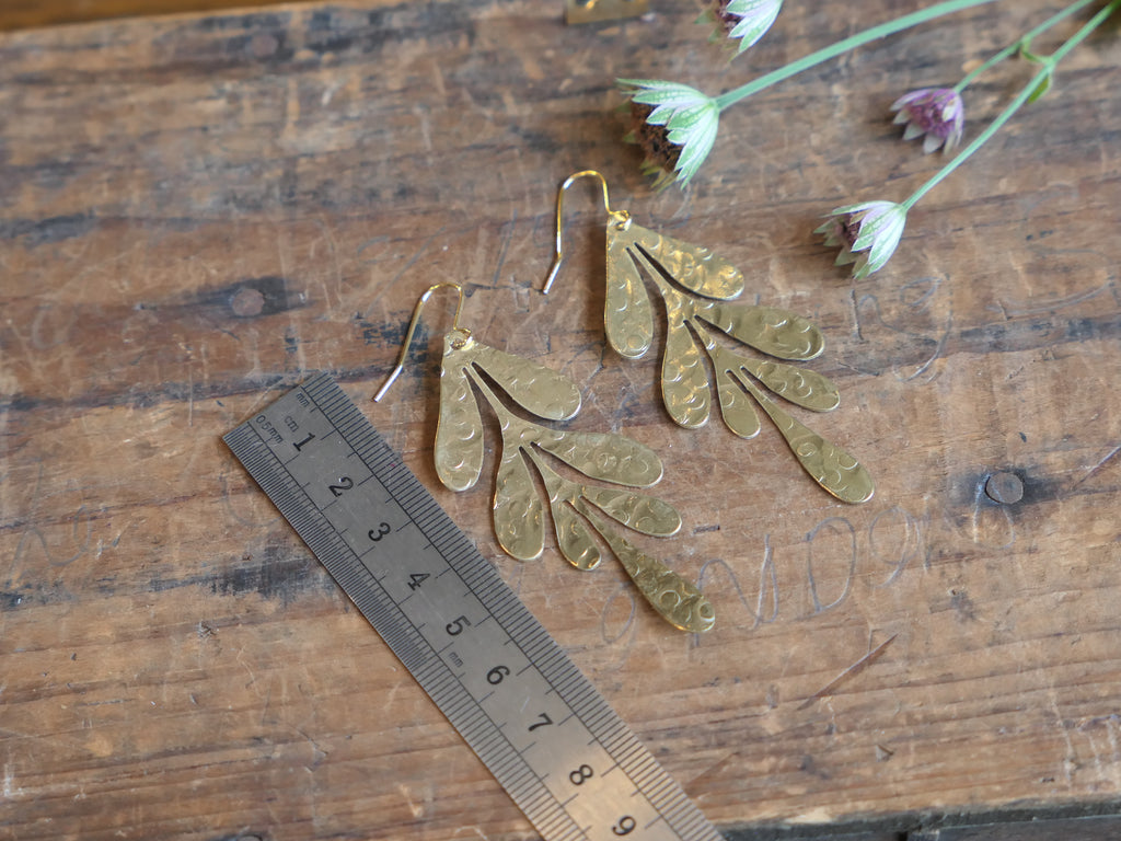 Handmade and unique. A textured hammer is used on these raw brass earrings, leaving the surface with a bubbled finish that echoes the organic shapes of seaweed. This undulated surface really captures the light as you move.